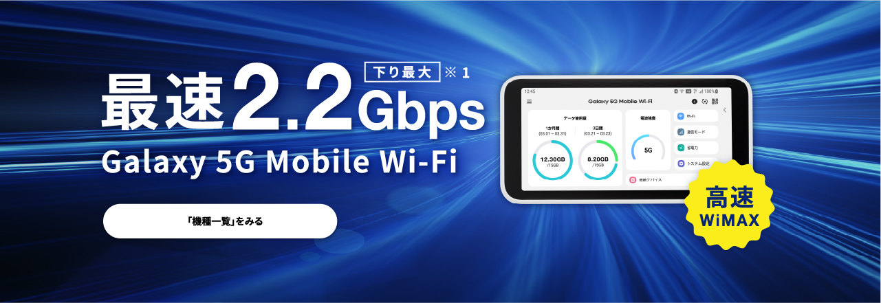 ※WiMAX+5GはWiMAX2+に加え、au 4G LTEと高速な5Gがご利用いただけます。5Gエリアは一部エリアでの提供です。
