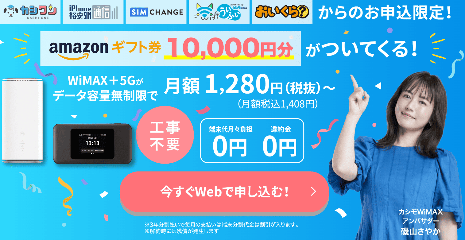 Amazonギフト券だけじゃない!カシモWiMAXのお得なキャンペーン