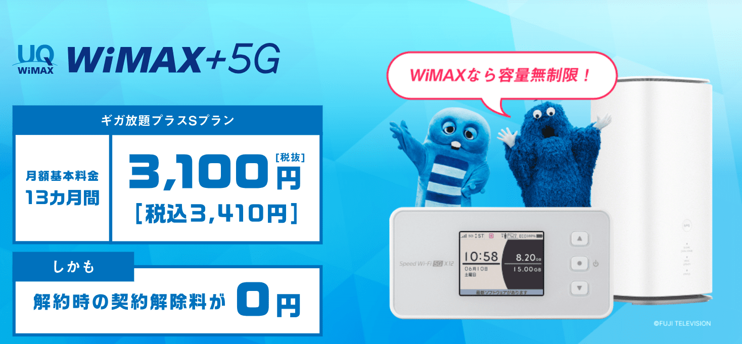 UQ WiMAX:1~13ヵ月目4,268円(税込)