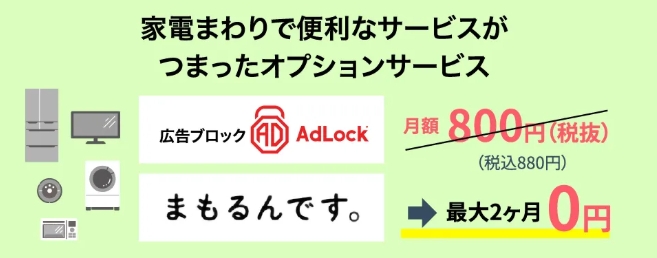 オプション内容 | 広告ブロック「AdLock」+保証書管理ツール「まもるんです」 家電・住宅設備・什器備品修理費用保険付き |