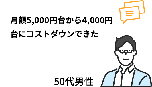 カシモと同額のプランを契約していたが、通信環境が悪くつながらなかった。カシモに替えて安定した通信環境が手に入り、料金減額につながった